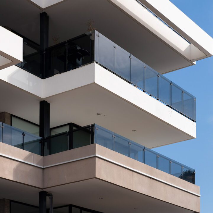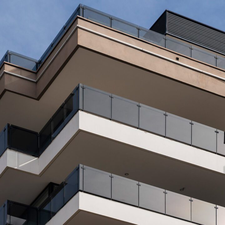 En este edificio de departamentos de alto nivel instalamos carpintería de alta prestación de la línea Clásica 60 de Flamia.