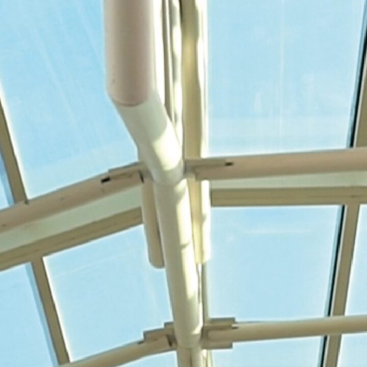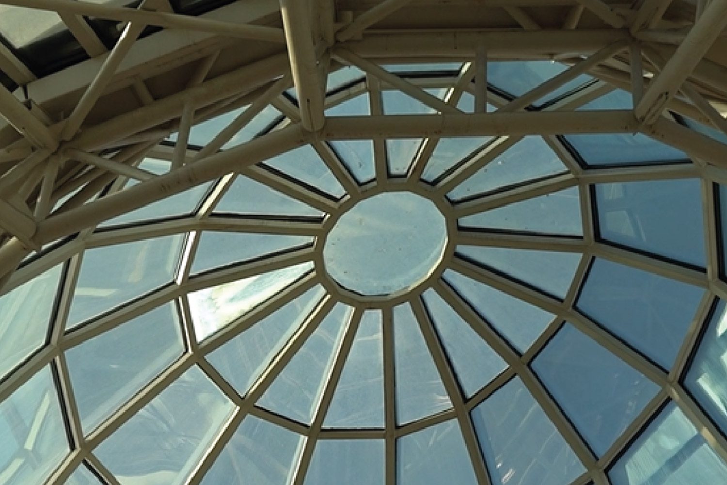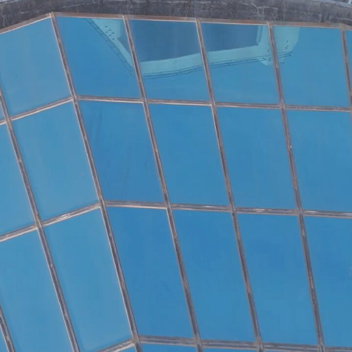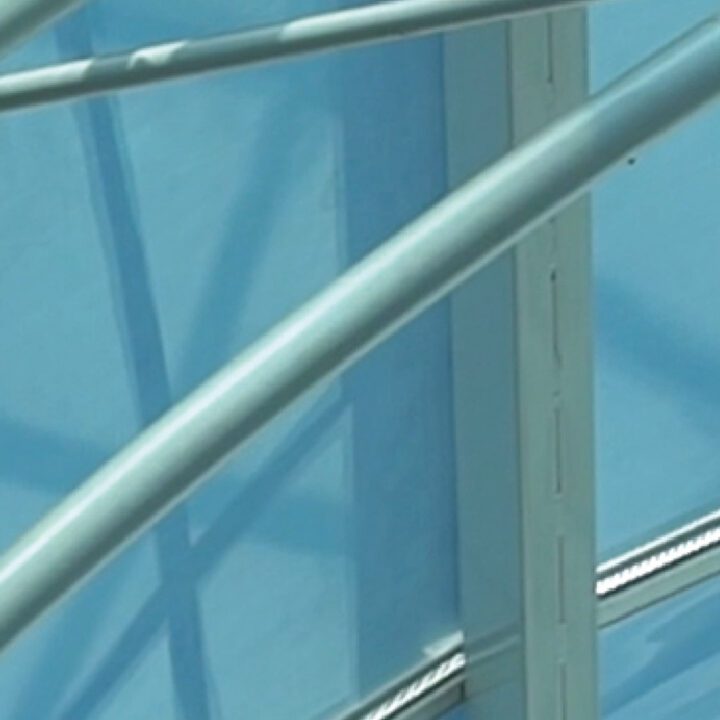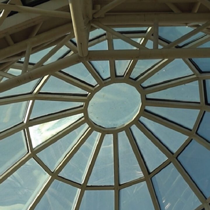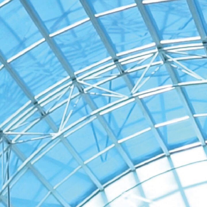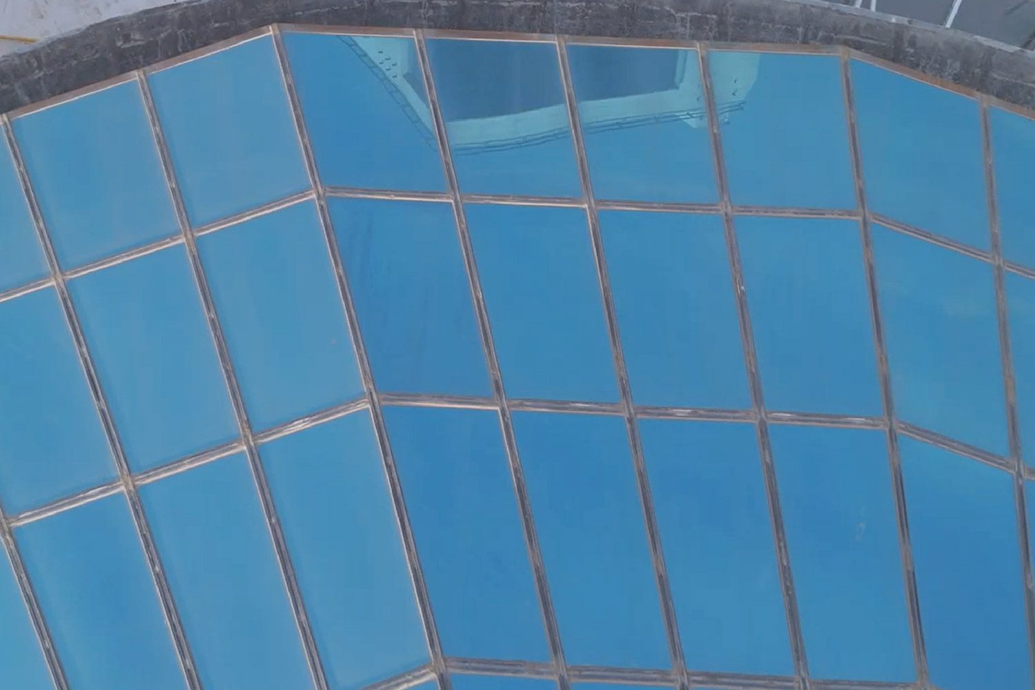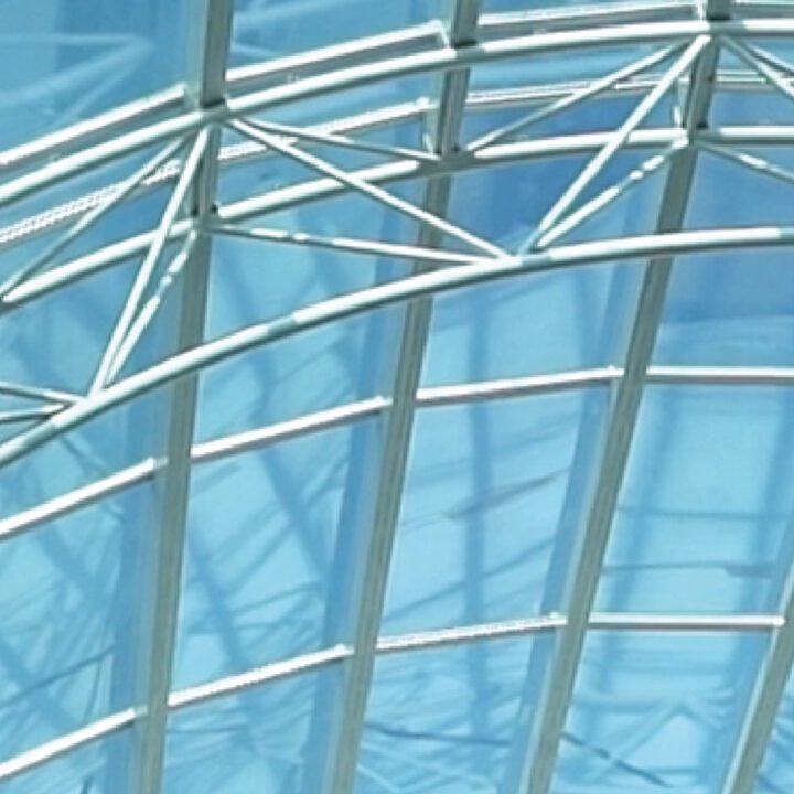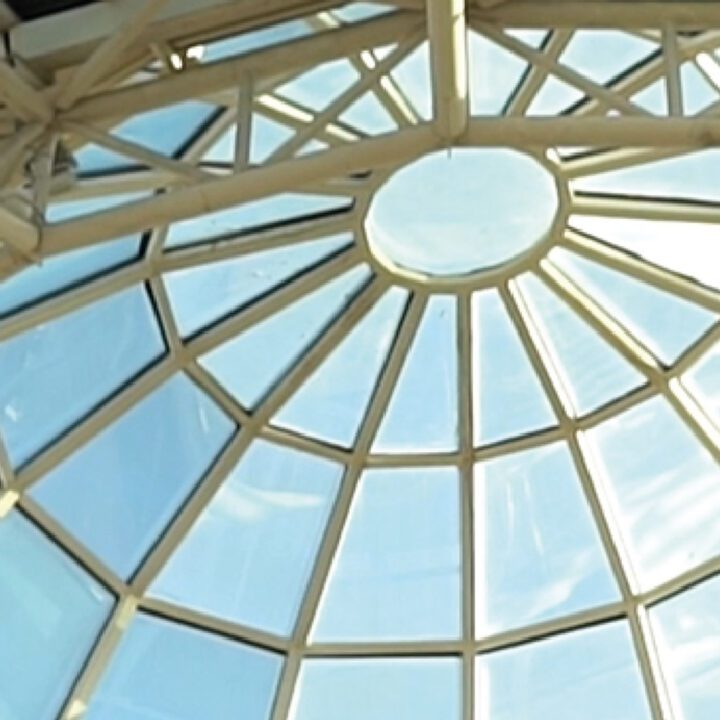 En la ampliación actual (2024/2025), volvimos a intervenir con una nueva cúpula tipo bóveda, ahora con desarrollo curvo. Además, realizamos las fachadas vidriadas del acceso en planta baja y primer piso, manteniendo el mismo sistema estructural y el uso de vidrio laminado verde de seguridad.